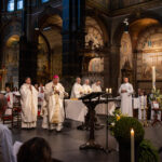 Woensdagavond 24 april was de Requiemmis voor paus Franciscus in de co-kathedrale basiliek van Sint Nicolaas in Amsterdam. Groot was de verrassing toen ’s morgens werd aangekondigd dat ook de koning erbij aanwezig zou zijn. Daardoor kreeg deze pontificale Mis een nationaal karakter.